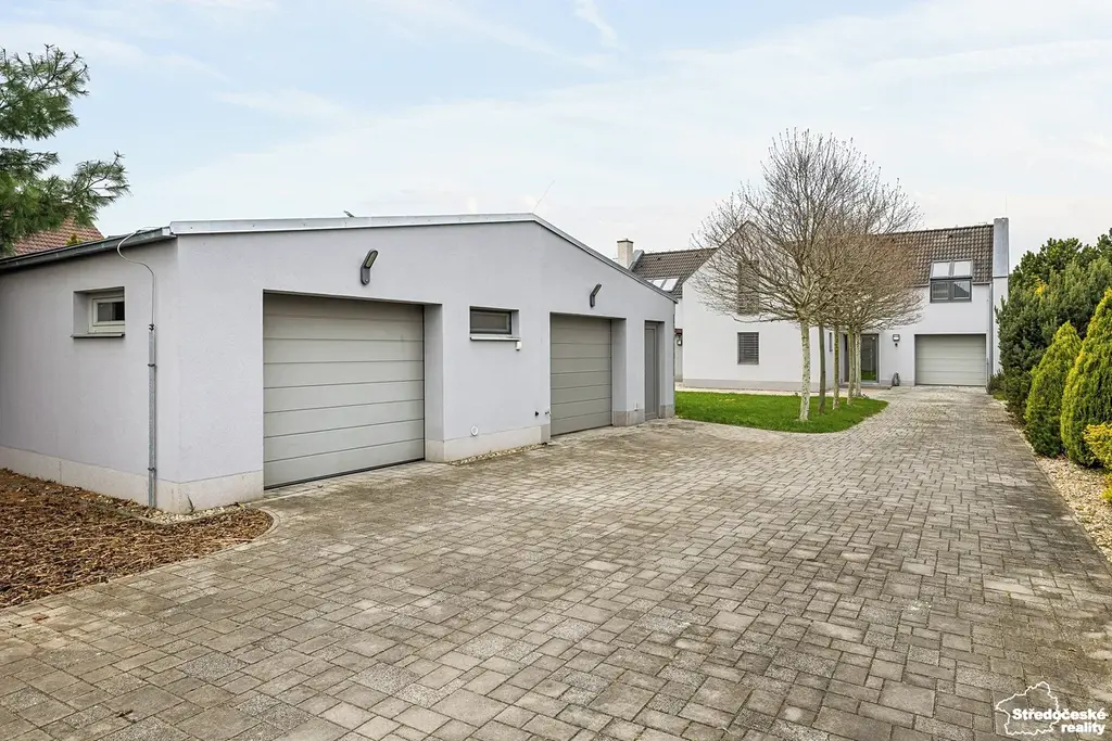 Druhá zóna je určena automobilům, motorkám a zahrnuje prostornou dvougaráž, další samostatnou mobilní garáž a několik venkovních parkovacích míst.