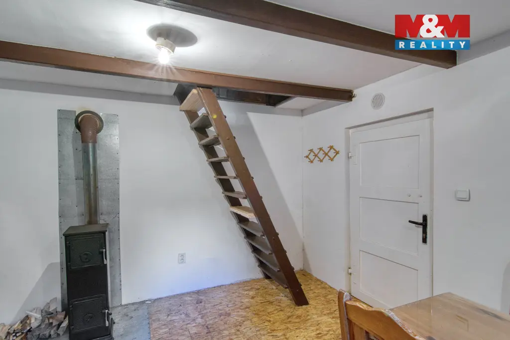Dřevěná, zateplená chata má praktickou dispozici – vstupní chodbu, obytné přízemí a horní patro vhodné ke spaní. Je částečně zařízená, prošla lehkou rekonstrukcí interiéru a zachovává si svůj původní charakter s možností dalších úprav dle vlastních představ. Vytápění zajišťují kamna, k dispozici je sklep na uskladnění surovin, zdroj vody je v podobě blízké studánky a nechybí praktická kůlna.