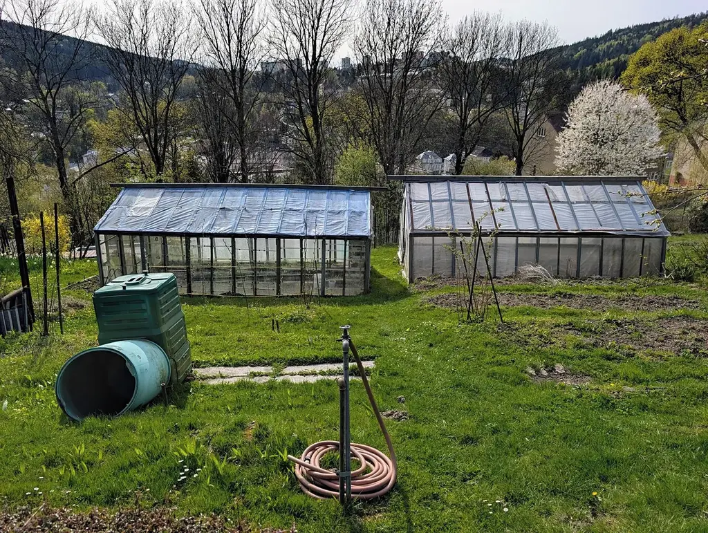 Nabízím k prodeji zahradu s dřevěnou chatou a skleníky o celkové výměře 644 m2, nacházející v ul. Popelnická v Tanvaldě, část obce Šumburk nad Desnou. Jedná se o slunný pozemek přístupný pouze pěšky (cca 30 metrů pěšinou od asfaltové místní komunikace) přes obecní pozemek. Na zahradu je přivedena užitková voda ze studně, která je umístěna na cizím pozemku. Na pozemek je zaveden elektrický proud ze sousední zděné garáže, přes sousední chatu. Nutno dořešit podružné měření nebo požádat ČEZ o připojení. Chata je v horším technickém stavu k rekonstrukci. Možno přikoupit sousední zahradu o výměře 502 m2, nebo dřevěnou kolnu (garáž) v blízkosti zahrady. Ihned k dispozici.