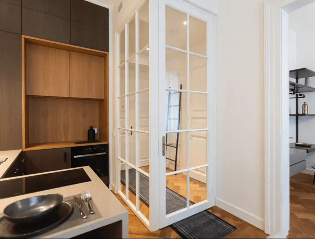 Tento výjimečný byt je zařízen nábytkem na míru s důrazem na detail, funkčnost a nadčasový design. Dispozice zahrnuje světlý obývací prostor s plně vybavenou kuchyňskou linkou, samostatnou ložnici a koupelnu se sprchovým koutem.