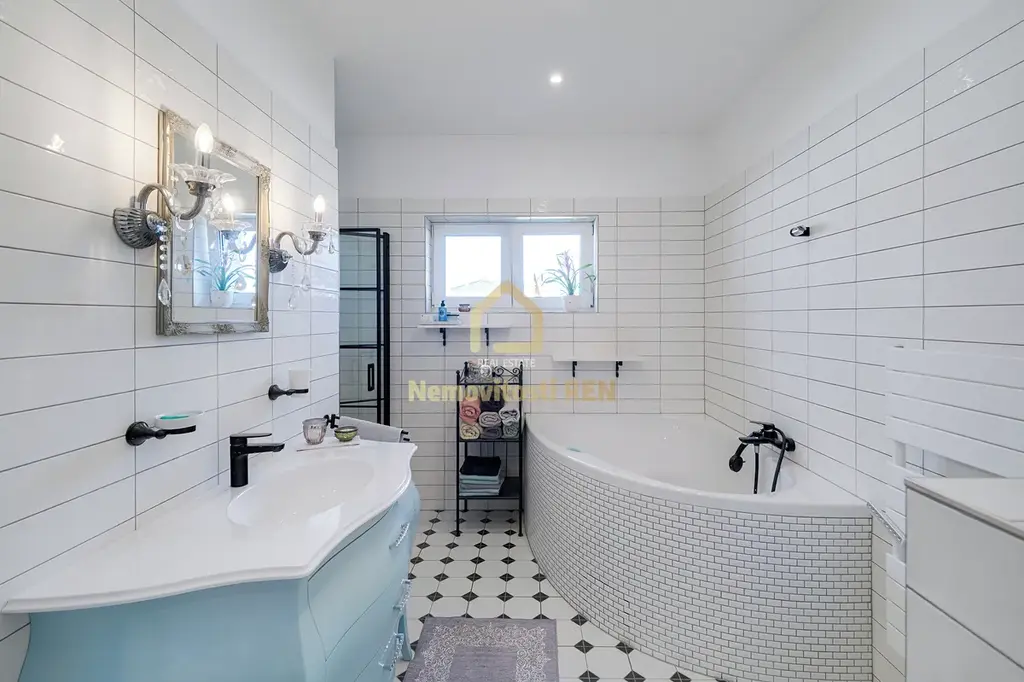 Dispozice dále nabízí tři samostatné pokoje, koupelnu s vanou i sprchovým koutem, dvě toalety a technickou místnost. O tepelný komfort se stará podlahové vytápění napojené na tepelné čerpadlo, které zároveň zajišťuje i ohřev vody. Komfort bydlení dále zvyšují venkovní rolety, které poskytují soukromí, stínění i lepší tepelnou izolaci. Dům je napojen na kanalizaci.