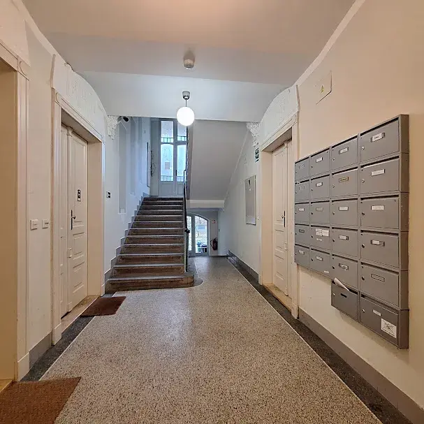 Okna bytu jsou orientována do klidného vnitrobloku. Byt se pronajímá částečně zařízený a vybaven kuchyňskou linkou se spotřebiči (horkovzdušná el. trouba, varná deska, myčka, odsavač par, kombinovaná lednice s mrazákem). V bytě není nábytek a pračka (v koupelně je připravena přípojka) z důvodu, aby si mohl nový nájemník, vybavit byt , dle svého vkusu. Koupelna disponuje vanou, umyvadlem a otopným žebříkem. Toaleta je samostatně. K bytu nenáleží sklep. Součástí bytu je však úložný prostor/komora. Na podlahách byla použita plovoucí podlaha, dlažba. Bonusem bydlení je také zahradu u domu, kterou nájemník může využívat k relaxaci. V okolí veškerá občanská vybavenost – Tesco expres 1 min. v docházkové vzdálenosti, restaurace, kavárny, ZŠ, mateřská škola, nedaleko nákupní centrum Eden , nemocnice Královské Vinohrady.