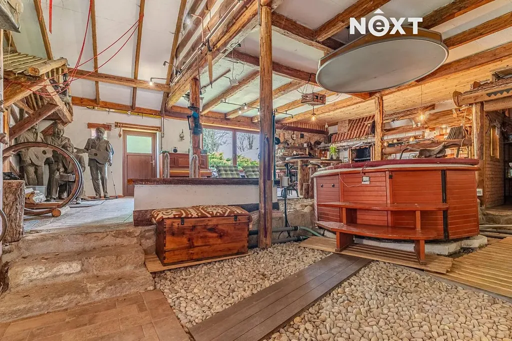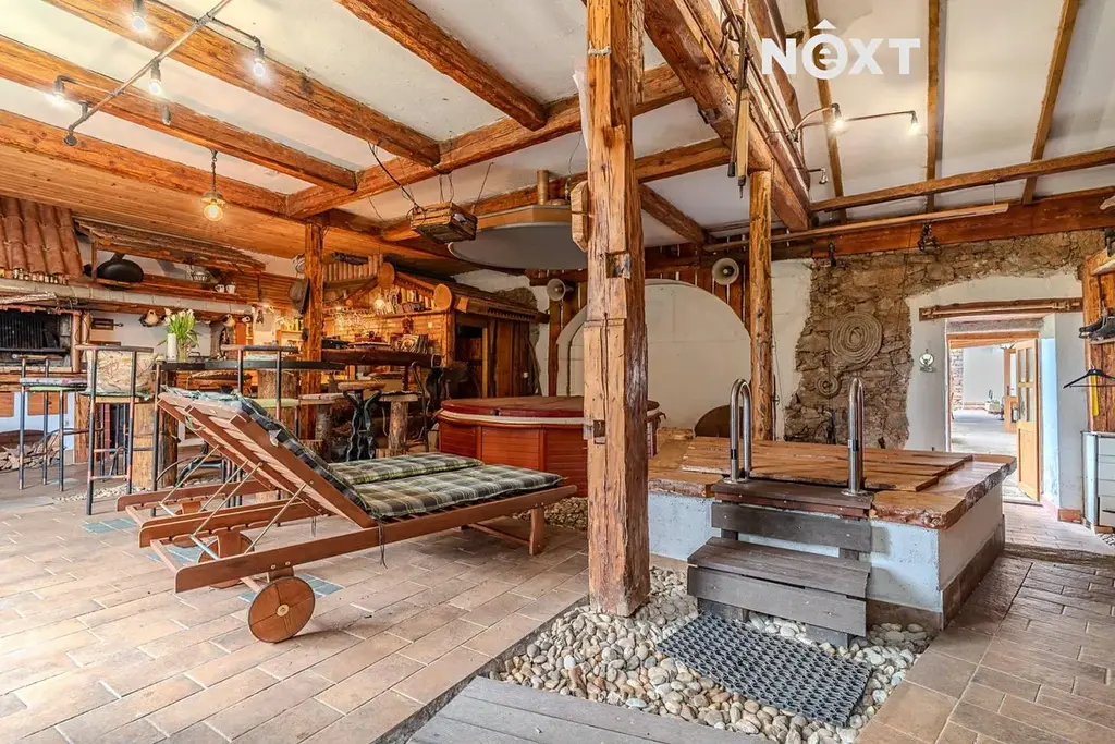 Dominantou nemovitosti je soukromá wellness zóna, která zajišťuje komfort a relaxaci po celý rok. K dispozici je samostatná kuchyně, sauna, vířivka i ochlazovací bazén – ideální místo pro odpočinek v naprostém soukromí.