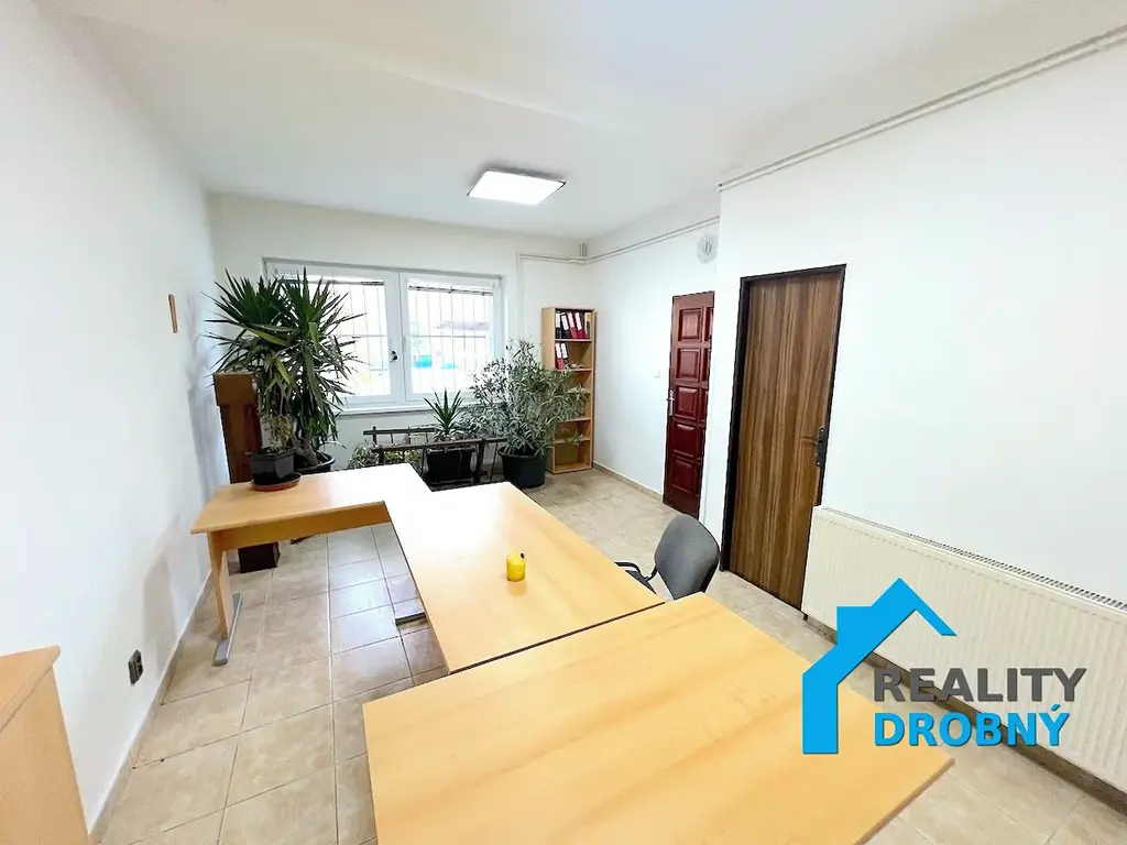 Nabízíme k pronájmu kancelář o velikosti 19 m2. Kancelář je vybavena nábytkem, okna plastová se mřížemi, dlažba, LED osvětlení. K dispozici je komora a společné sociální zázemí - toaleta, umyvadlo. Součástí pronájmu je 1 parkovací místo, popř. lze rozšířit. Vytápění a ohřev vody dálkové.