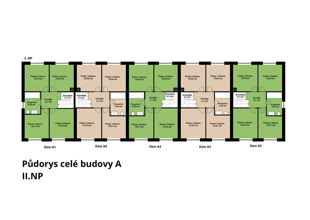 V budově je pouze pět domů, takže jde o jedinečnou příležitost pro klidné a moderní bydlení.