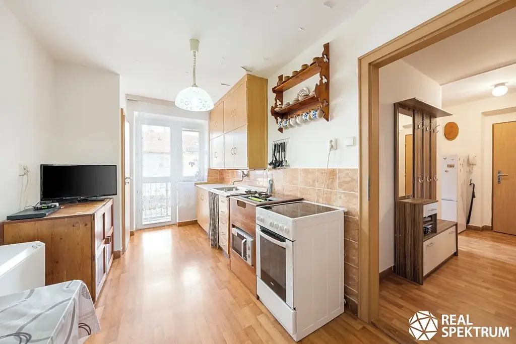V exkluzivním zastoupení nabízíme k prodeji byt o dispozici 2+1 o celkové podlahové ploše včetně dvou sklepů 66,9 m2. Byt má menší balkon do ulice a prosluněnou prostornou lodžii situovanou do zahrady za domem. Oplocenou zahradu můžete využít například k sušení prádla, posezení nebo si zde mohou hrát vaše děti.
