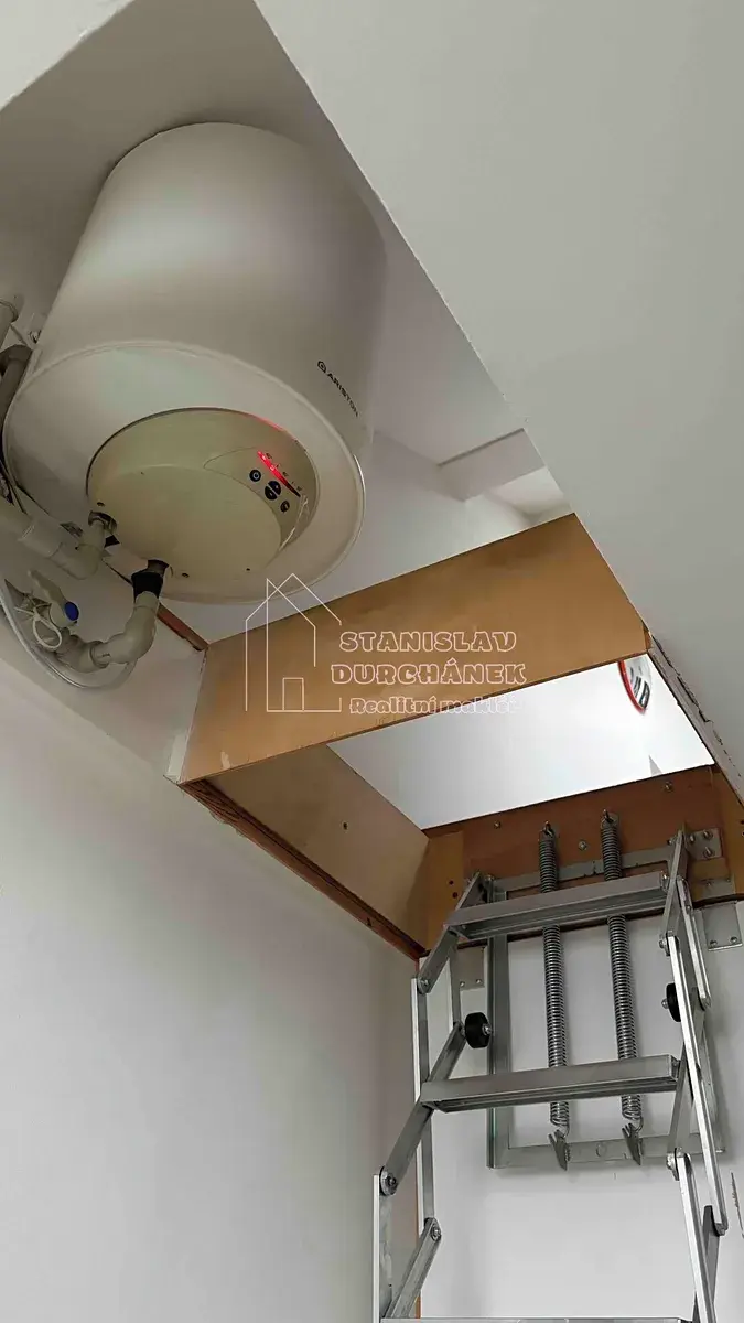 Disponuje patrem pro spaní (šířka postele 100 cm) s pracovním koutem.