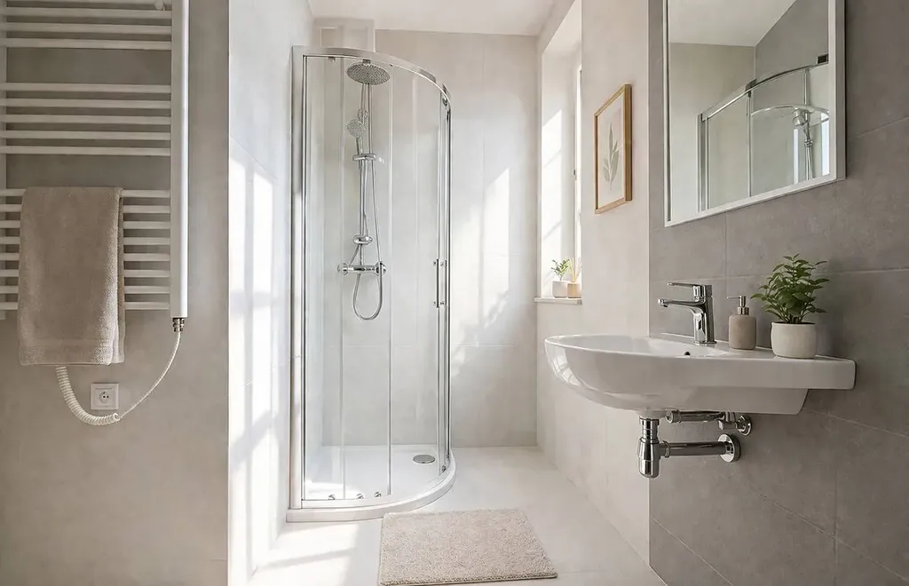 • Koupelna je provedena v moderním stylu s novým sanitárním vybavením.