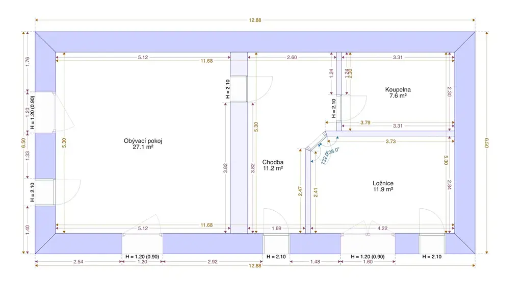 Plánovaná dispozice po rekonstrukci je však 4+kk. Vnitřní plocha domu určená k bydlení je nyní 58m² plus plánovaná vestavba v podkroví. Celková zastavěná plocha je 132 m² což obsahuje i kolny a přístavky.
