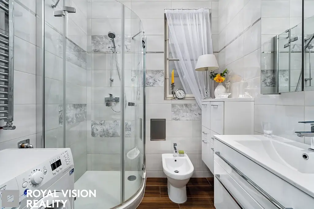 Byt dále nabízí samostatné WC, koupelnu se sprchovým koutem, bidetem, umyvadlem a otopným žebříkem. Velkou výhodou je také komora, kterou lze využít jako šatnu nebo ji jednoduchou úpravou přeměnit na technickou místnost pro pračku, sušičku a další potřebné věci.