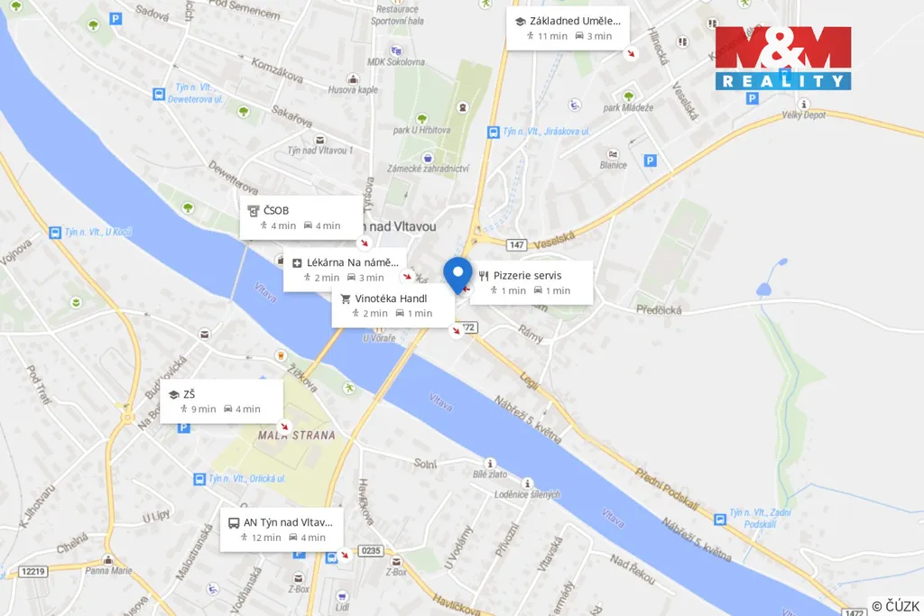 Nabízíme k prodeji investiční příležitost 1/2 rodinného domu v atraktivní lokalitě historického centra Týna nad Vltavou. Jedná se o zděný rodinný dům který nabízí 2 podlaží a pochozí půdu na kterou je přístup po klasických schodech a bylo by možné ji taktéž využívat k bydlení. Dům nabízí prostorné spodní podlaží, které bylo v minulosti zařízeno dispozičně jako restaurace včetně baru, kuchyně a sociálního zázemí . Toto podlaží je také částečně podsklepeno a má přístup na oplocenou předzahrádku. Centrálním schodištěm pak vstupujeme do horního podlaží, které je zařízeno k bydlení. Obsahuje 2 prostorné pokoje, kuchyňský kout a prostornou koupelnu s rohovou vanou a WC. Vytápění je řešeno centrálním kotlem, na který je připravena přípojka v přízemí a teplo z něj je rozvedeno do radiátorů. Dům je vybaven plastovými okny, která nabízí výhled do zeleně blízkého parku a poskytují dobrý tepelný komfort. Dům jako takový nabízí spoustu prostoru na bydlení nebo podnikání. Tak neváhejte.
