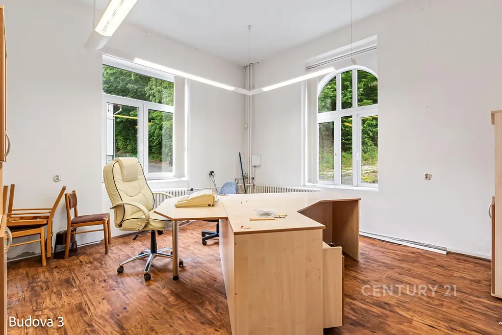 V samostatné budově v areálu v Děčíně–Bynově nabízíme pronájem kompletního administrativního celku o podlahové ploše 635 m². Budova je v dobrém technickém stavu a připravená k okamžitému provozu.