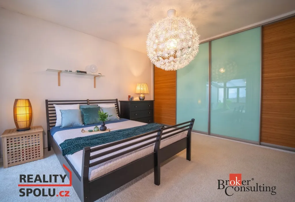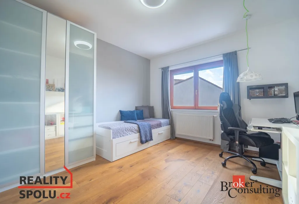 Pokud chcete bydlet v Říčanech! Ve výhradním zastoupení nabízíme k pronájmu nádherný řadový dům, sousedící pouze z jedné strany s dalším domem. Dům je kompletně vybaven k nastěhování 1.5.2026. Nyní řešeno dispozičně jako 4kk, navíc zasklená terasa fungující jako další místnost. K domu náleží garážové stání s přístavkem, nyní jako pracovna. Vchod domu , malá předsíň, poté vstup do haly. Samostatně stojící WC, technická místnost a sklad. Zašupovací dveře oddělují obývací pokoj od haly. Obývací pokoj je spojen s kuchyňským koutem. Dům je prosvětlen, s výhledem do zeleně. Z obývacího pokoje je vstup na terasu a zahradu. Zahrada je velmi citlivě řešená, skýtá obyvatelům domu naprosté soukromí. Po osvětleném schodišti vstupujeme do patra . V patře jsou tři samostatné pokoje, nyní využíváno jako dva dětské a ložnice. Z ložnice je vstup na zastřešenou terasu, která je nyní využívána jako tělocvična či relaxační místnost. V horním patře je velká koupelna s vanou a sprchovým koutem. Dům je na okraji města, skloubí v sobě soukromí a přírodu. Dojezd do centra Prahy cca 20 minut. Veškerá občanská vybavenost na dosah. Včetně soukromé školky, státní školy, školky, Gymnázia. Říčany jsou opakovaně vyhlášeným nejlepším městem pro život! Kauce majiteli jsou 2 měsíční nájmy.Těšíme se na prohlídky.