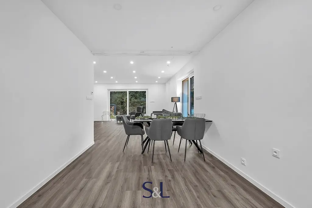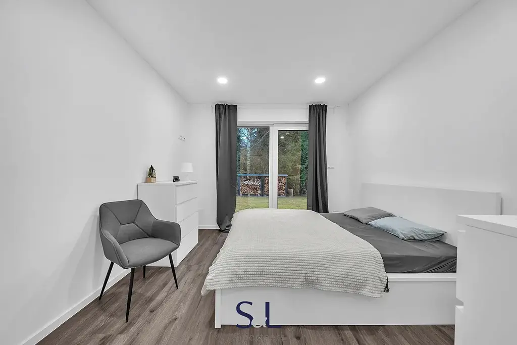 Dům je nově rozdělen na dvě samostatné bytové jednotky – přízemní byt se zahradou a podkrovní byt. Nabízená jednotka se nachází v přízemí a nabízí přímý vstup na vlastní zahradu s možností vybudování terasy.