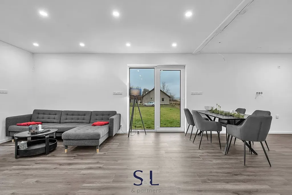 Velkým benefitem je propojení obytného prostoru se zahradou, která nabízí dostatek soukromí a prostor pro venkovní posezení či budoucí terasu.