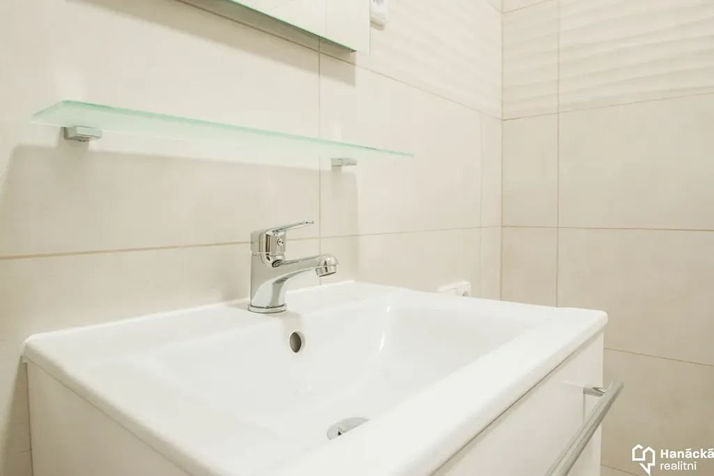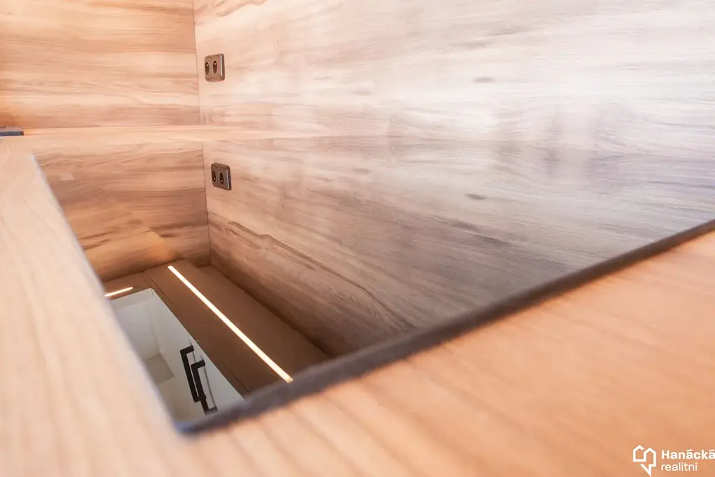 Samostatný pokoj o výměře 18,2 m2 je vybaven klimatizací, z pokoje je přístup na balkon. Oddělená kuchyně je vybavena indukční varnou deskou, elektrickou troubou a digestoří. Koupelna disponuje sprchovým koutem a elektrickým podlahovým vytápěním. Byt je vybaven úsporným LED svícením, kdy stropní svítidla je možné regulovat dálkovými ovladači. K bytu dále náleží sklep (kóje v přízemí domu) a možnost uskladnění kol a kočárků ve společné místnosti.
