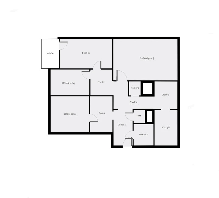 Byt se nabízí částečně vybavený. Kuchyňská linka disponuje vestavěnou lednicí, myčkou, elektrickou troubou a sklokeramickou deskou a digestoří. V obývacím pokoji se nachází plazmová televize, jinak je pokoj nezařízený. V ložnici se nachází velká vestavěná skříň a je z ní vstup na prostorný balkón. Další dva pokoje jsou nezařízené. V koupelně se nachází skřínka, umyvadlo se zrcadlem a vana. Toaleta je samostatně. V předsíni naleznete dostatek úložního prostoru, botník a vstup do komory.