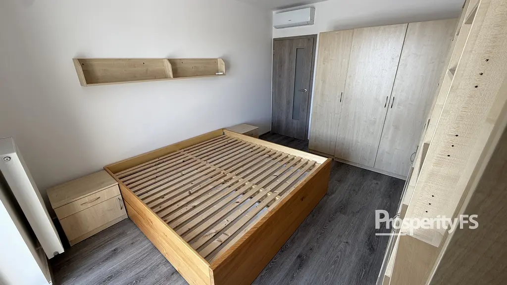 Velkou předností bytu je klimatizace instalovaná v obou obytných místnostech, která zajišťuje tepelný komfort i v letních měsících. Interiér je částečně zařízen: najdete zde moderní kuchyňskou linku se spotřebiči, koupelnu s pračkou a kompletně vybavenou ložnici. Pokud preferujete vlastní nábytek, vybavení lze po dohodě odstěhovat.