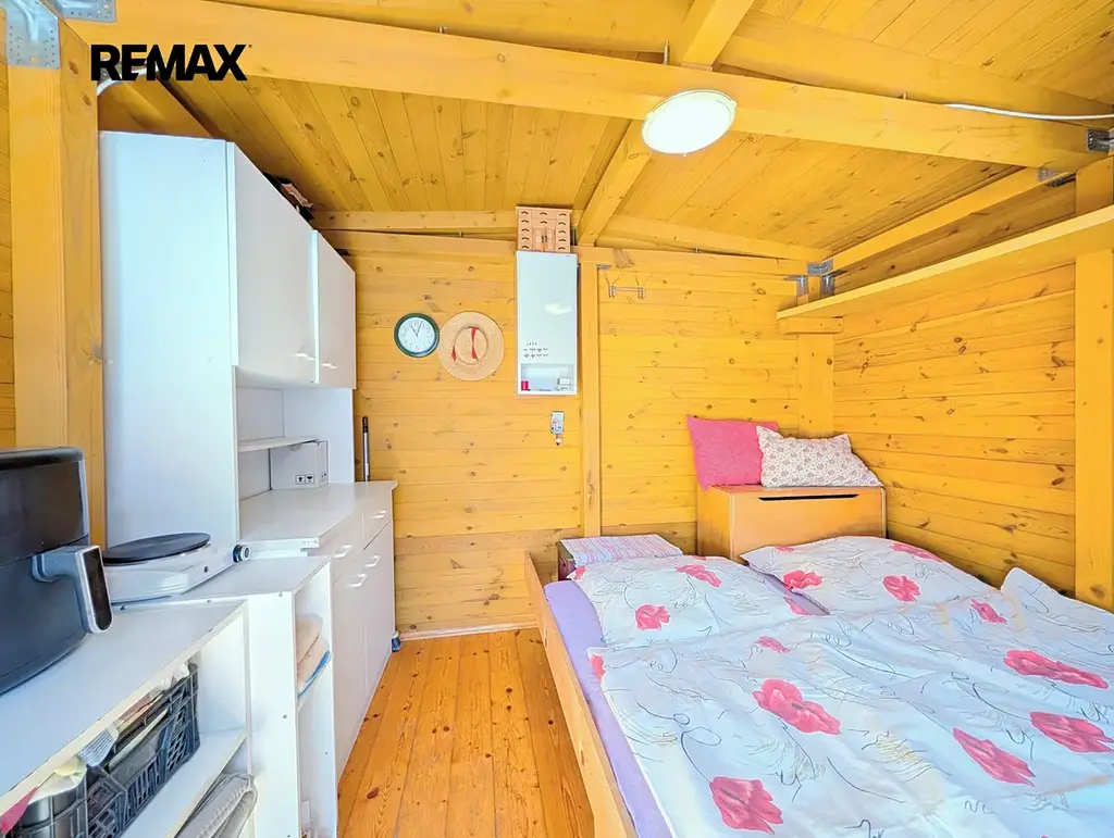 K chatě je aktuálně zajištěn přívod elektřiny a vody, přičemž veškeré inženýrské sítě jsou dostupné na hranici pozemku. Přípojka ke kanalizaci je uhrazená a její realizace bude začátkem roku 2027. A co by to bylo za venkovskou chatu bez kadibudky?
