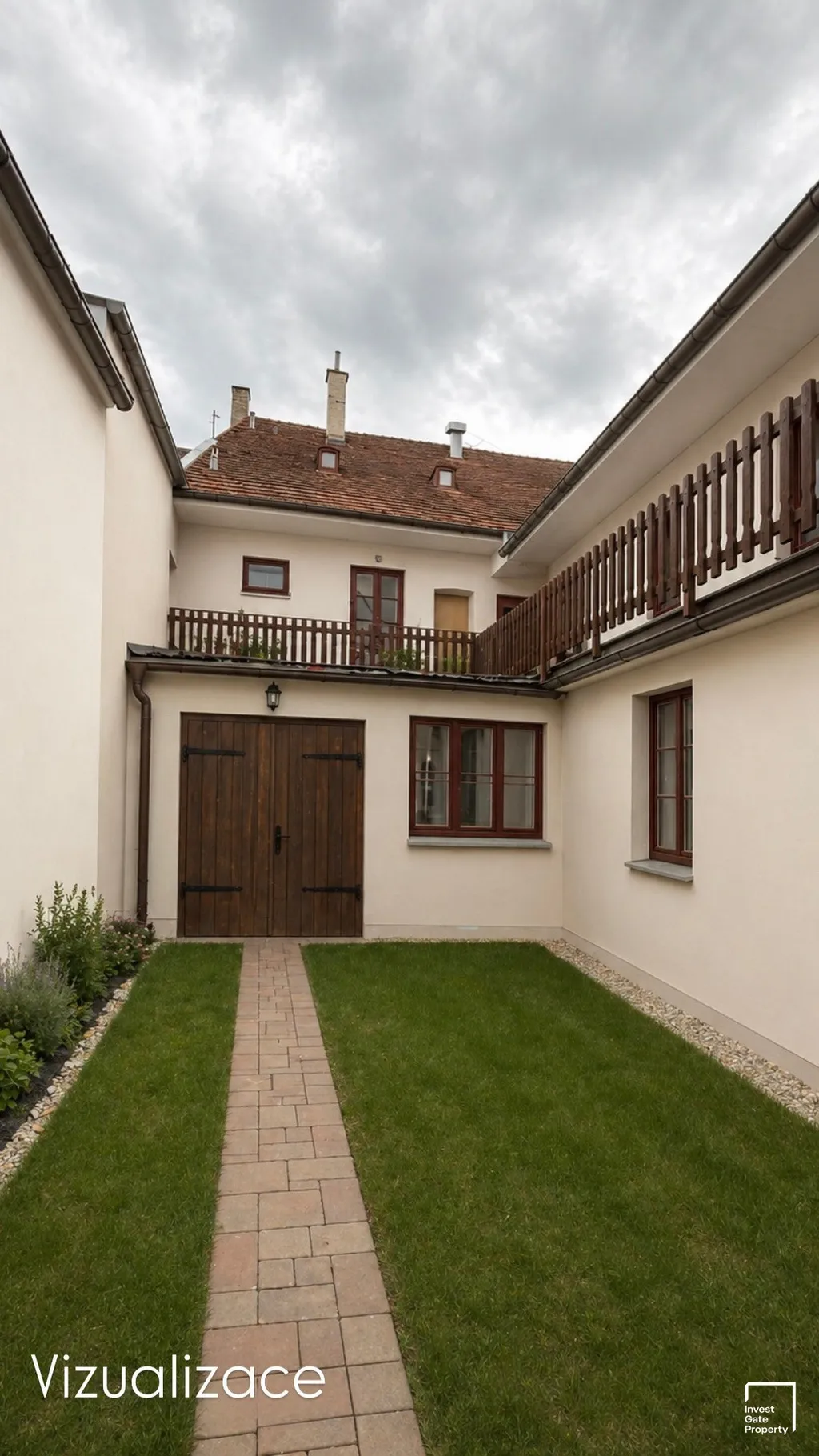 Velkým benefitem je uzavřený vnitroblok se zahradou o výměře 274 m², poskytující dostatek soukromí a prostoru pro odpočinek či další využití.