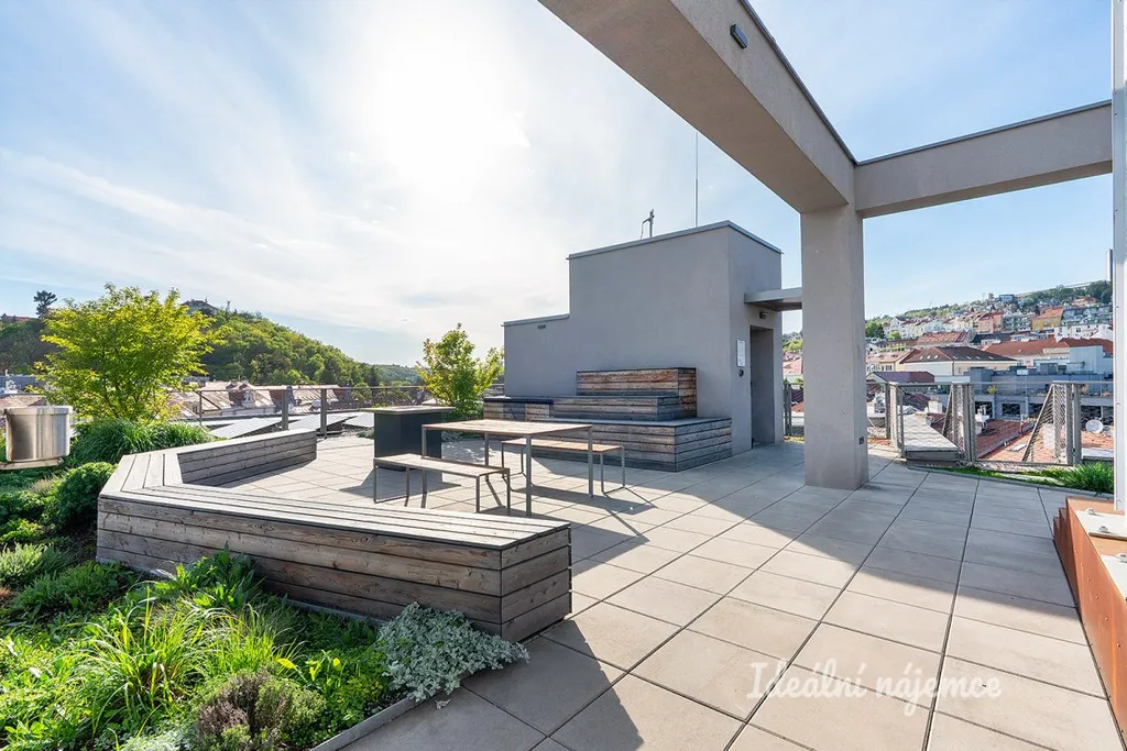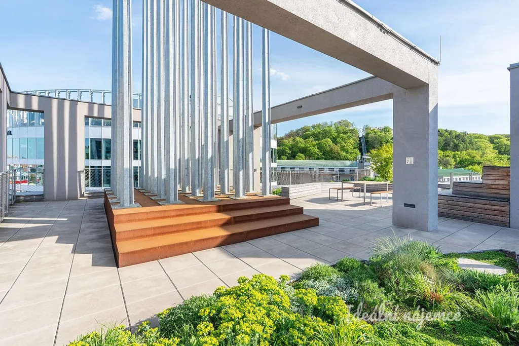 K bytu náleží dva samostatné sklepy, vlastní garážové parkovací stání a je možné využívat společnou střešní terasu.