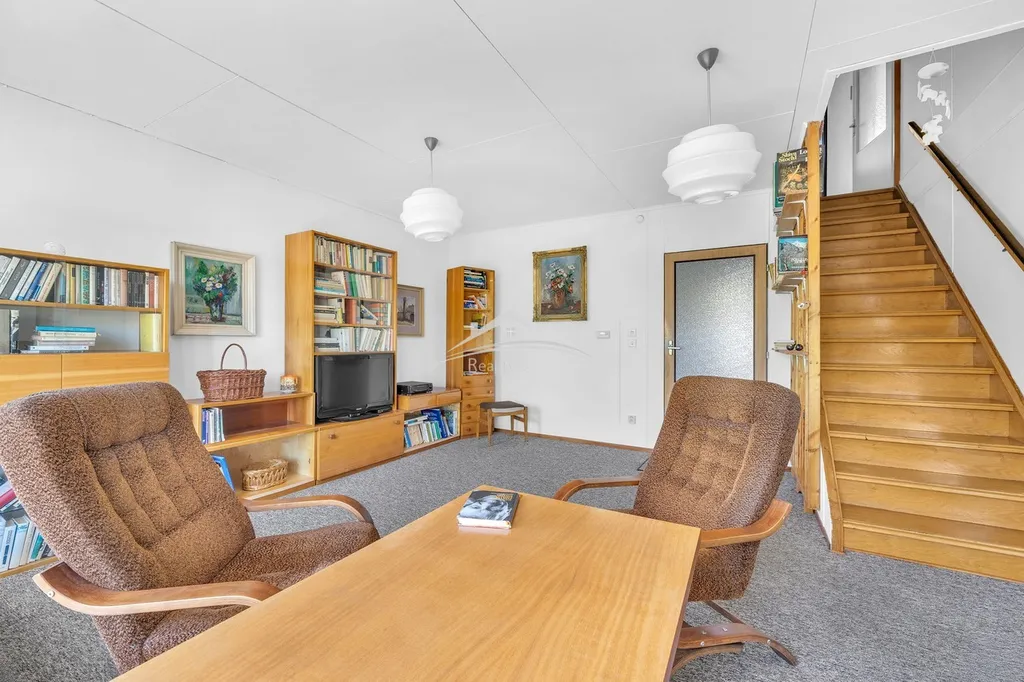 Dům je kompletně podsklepený a nabízí dostatek praktického zázemí – najdete zde prádelnu, technickou místnost, sklad potravin, dílnu i samostatné WC využitelné například pro zahradu. Ze sklepa je navíc přímý vstup na zahradu, což zvyšuje komfort užívání.