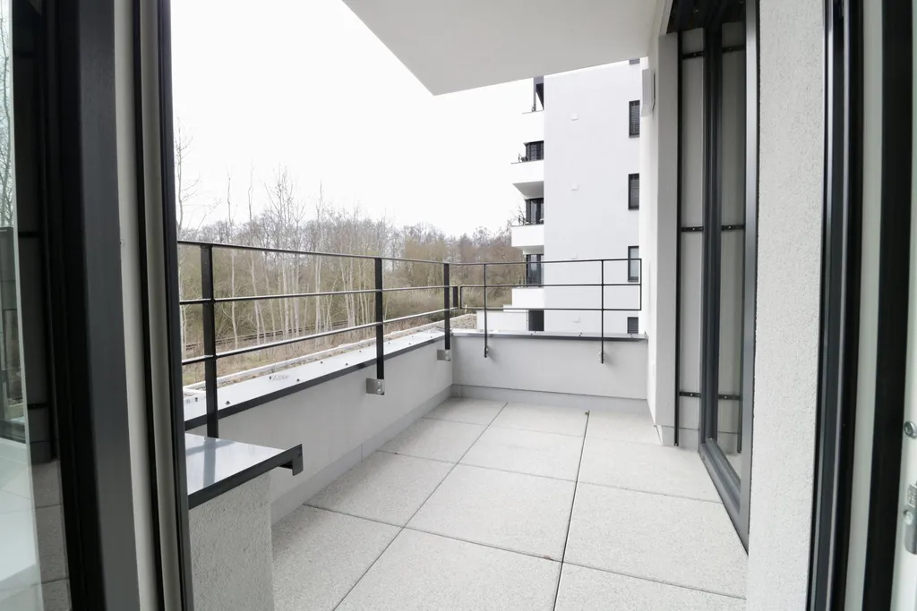 Byt je vybaven moderní kuchyňskou linkou se spotřebiči a venkovními elektrickými roletami. Vytápění je řešeno dálkově, s podlahovým topením v celém bytě. Solární panely napomáhají s ohřevem vody a napájením společných prostor.