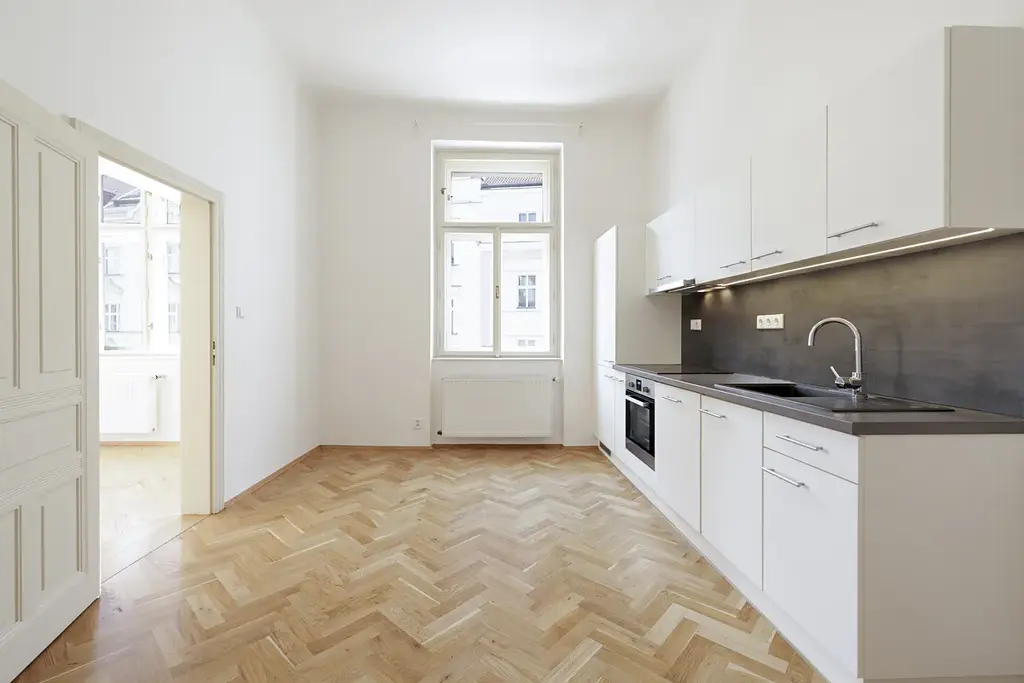 Nabízíme k pronájmu nadstandardně řešený byt o dispozici 2+1 a celkové ploše 85,8 m², situovaný ve 4. patře reprezentativního domu s výtahem v prestižní lokalitě Praha 1 – ulice Na Zderaze.