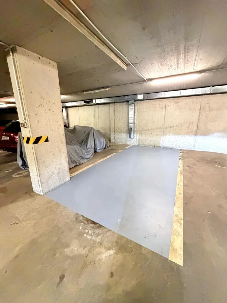 Rozměry stání činí přibližně 2,38 × 5,29 m, což zajišťuje komfortní parkování osobního automobilu.