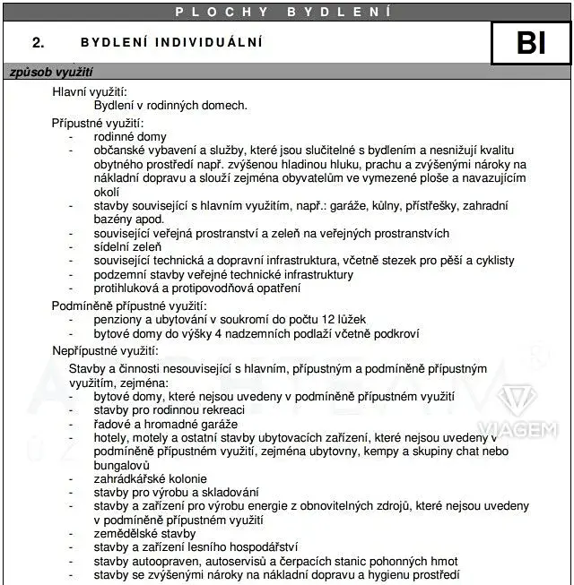 Územní plán: BI – Bydlení individuální (návrhová plocha)