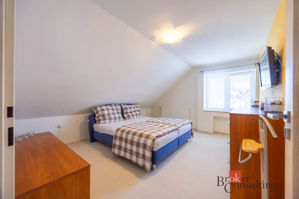 Velkou výhodou této nemovitosti je přístavba se samostatnou bytovou jednotkou s vlastním vchodem. Ta disponuje obývacím pokojem s kuchyňským koutem, ložnicí, chodbou a koupelnou s WC. Jednotka má široké využití – ideální pro vícegenerační bydlení, ubytování hostů, podnikání z domova nebo jako zdroj pasivního příjmu formou pronájmu.