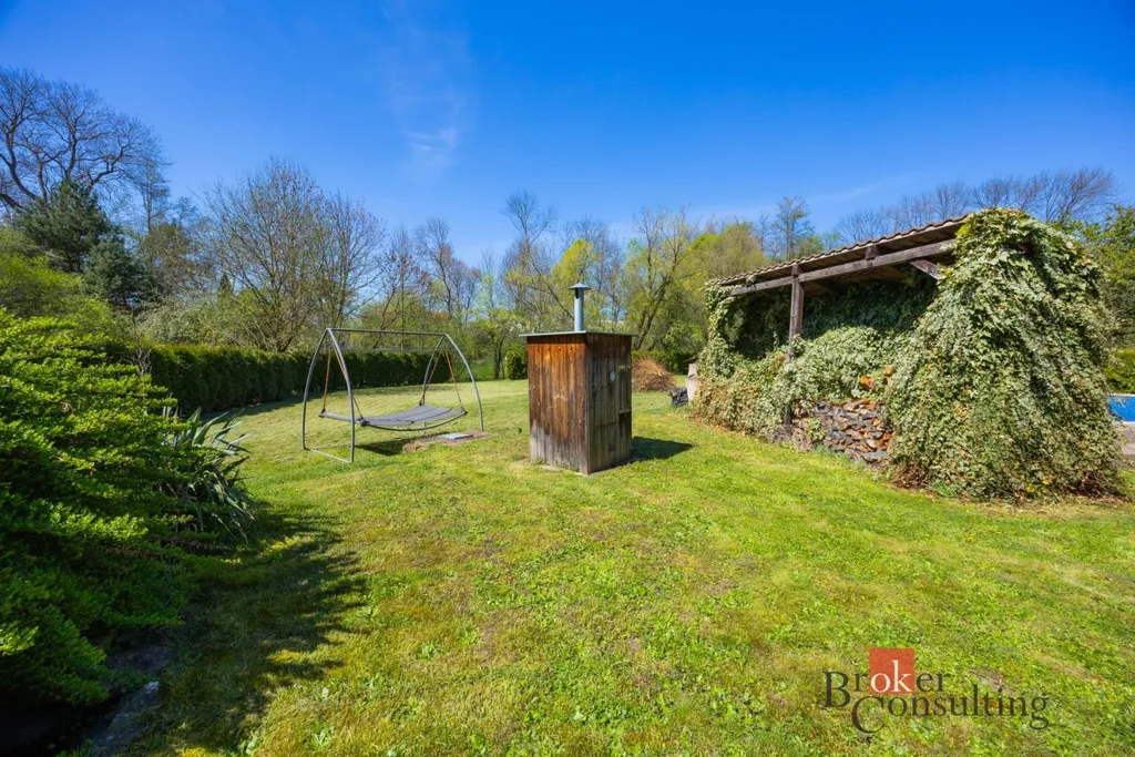 K domu náleží rozlehlá, pečlivě udržovaná zahrada, která nabízí dostatek prostoru pro relaxaci i aktivní odpočinek. Díky vzrostlým tújím je zajištěno maximální soukromí.