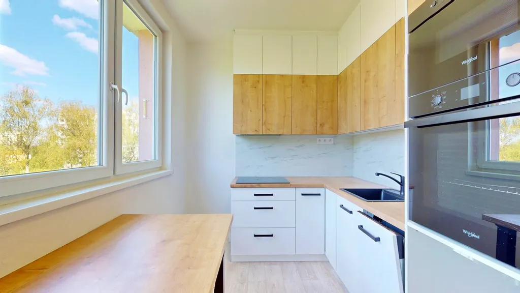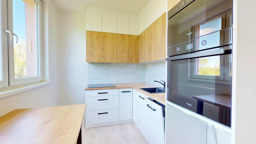 • Rekonstrukce bytu byla jádro, částečně elektřina, omítky, koupelna, toaleta, kuchyně s kuchyňskou linkou na míru od stolaře