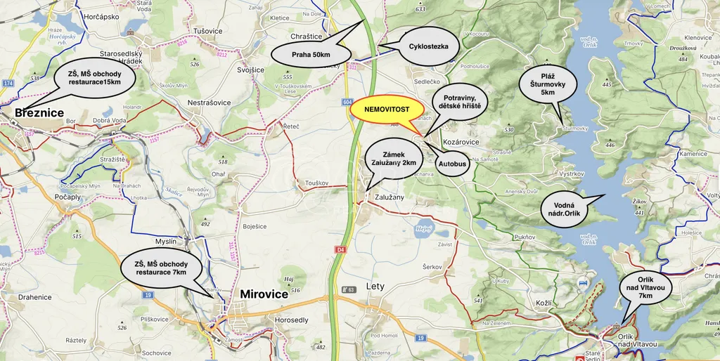 Lokalita je jedním z hlavních benefitů této nemovitosti. Okolí Orlíku nad Vltavou a přehrady nabízí široké možnosti trávení volného času cyklistiku, pěší turistiku i vodní sporty. Příroda je zde doslova na dosah ruky.