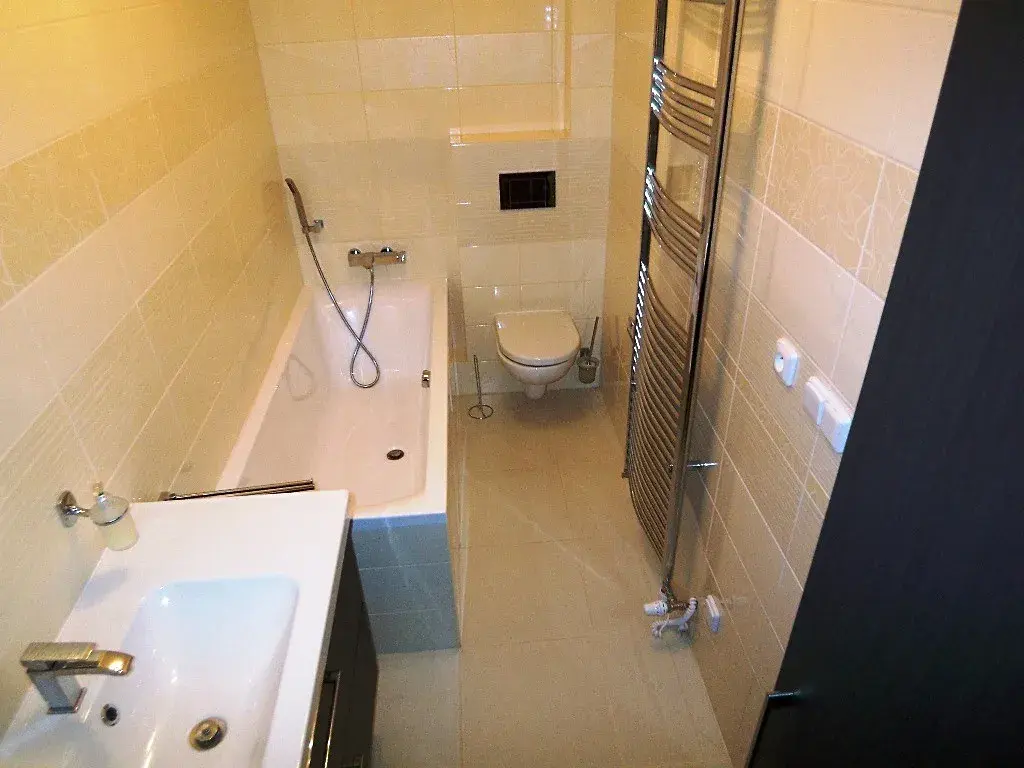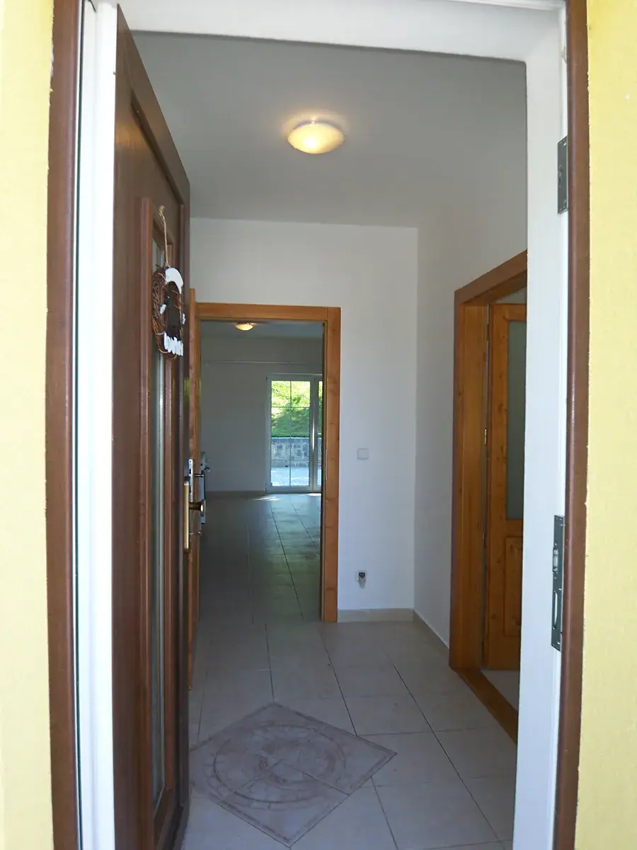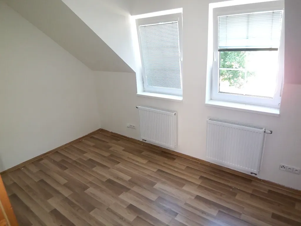 Pronájem novostavby řadového rodinného domu 3+kk (78m2) s vlastní oplocenou terasou (55m2), Milín. V přízemí je vstupní chodba, technická místnost s plynovým kotlem, umyvadlem a WC, dále je obývací pokoj s kuchyňským koutem se vstupem na krásnou terasu. Dále je v přízemí menší komora v prostoru pod schodištěm. Schody do patra, v patře koupelna s vanou a dvě podkrovní ložnice. Ve špičce krovu je ještě půdní prostor přístupný po dřevěných skládacích schodech. Provedení domu je ve vysokém standardu s použitím kvalitních materiálů a masivního dřeva. V přízemí podlahové topení. Nízké náklady na energie díky vysokému stupni zateplení. Jedno parkovací stání v areálu před domem. Za domem terasa s dlažbou oddělena plotem od sousedního domu. Videotelefon. Příjemné okolí na kraji obce Milín, pěkný areál s rodinnou atmosférou, klidné sousedství.