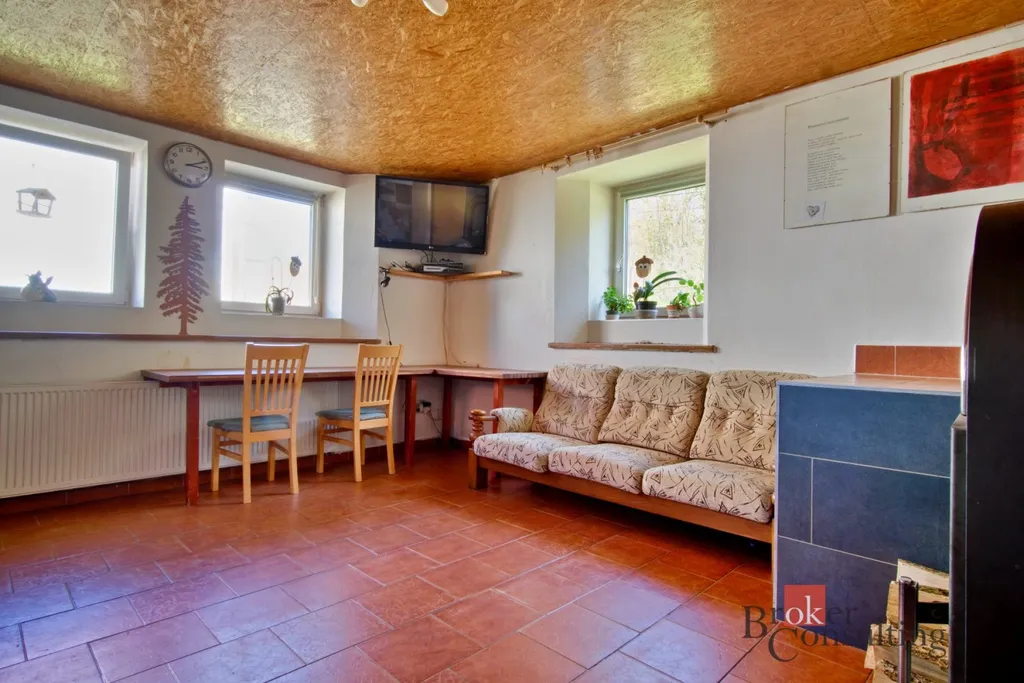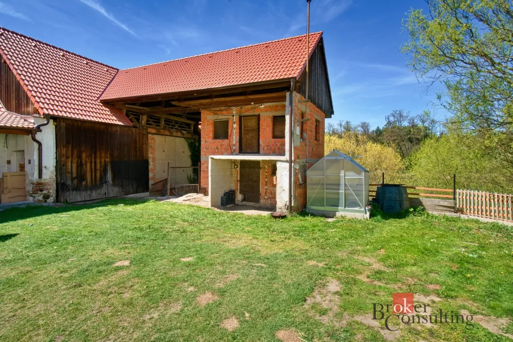 K domu patří také dvoupatrový přístavek, který může posloužit jako výminek, sklad, nebo po úpravě jako garáž. Součástí je také prostorná, částečně podsklepená stodola a zateplená dílna pro kutily.