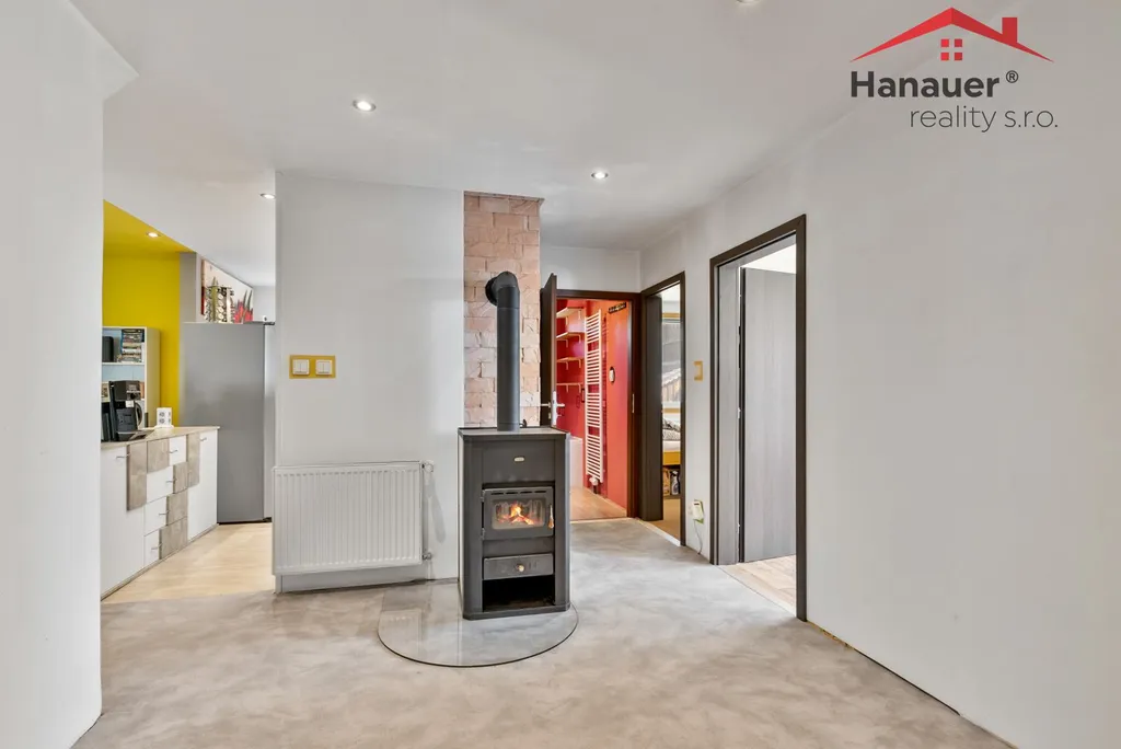 Dům dispozičně velké 3+kk, je ve velmi dobré kondici díky částečné rekonstrukci, která se zaměřila na to nejdůležitější, nové podlahy, nová kuchyň, koupelna, kde je rohová vana, kompletně nová elektřina v mědi, voda v plastu (napojena na veřejný vodovod), nový komín a rozvody topení taktéž v mědi. Dále nová plastová okna v celém domě zajišťují skvělý tepelný komfort a dům je již částečně zateplen. Můžete si vybrat, jakým způsobem budete topit dům nabízí dvě plnohodnotné varianty. Krbová kamna s výměníkem vytvoří atmosféru praskajícího dřeva spojená s praktickým ústředním topením rozvedeným po celém domě. Pro maximální pohodlí a bezobslužný provoz je v domě vybudován i moderní elektrokotel.