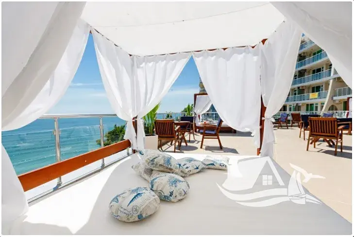 Obytný komplex Silver Beach, ve kterém je byt situován se nachází v první linii k moři, je perfektně udržovaný a má následující vybavení: dva bazény pro dospělé a děti, relaxační prostor s lehátky a slunečníky, posilovnu, hernu, konferenční místnost. V budově je výtah. Poplatek na údržbu činí 10€/m2 ročně.