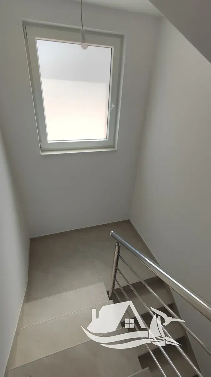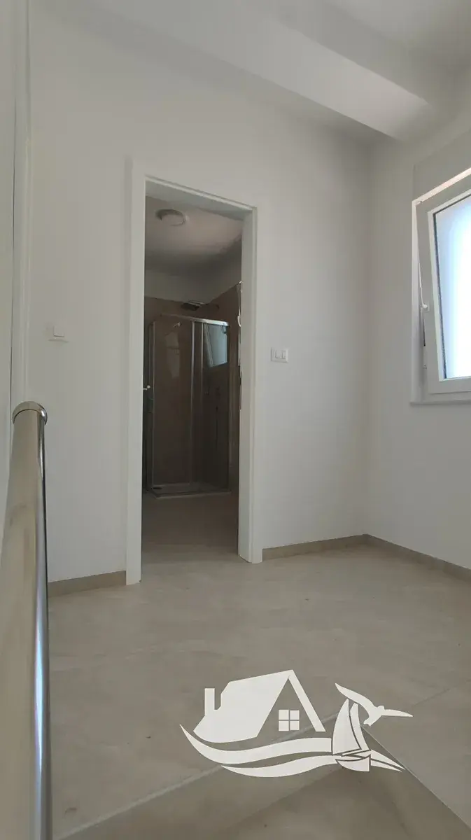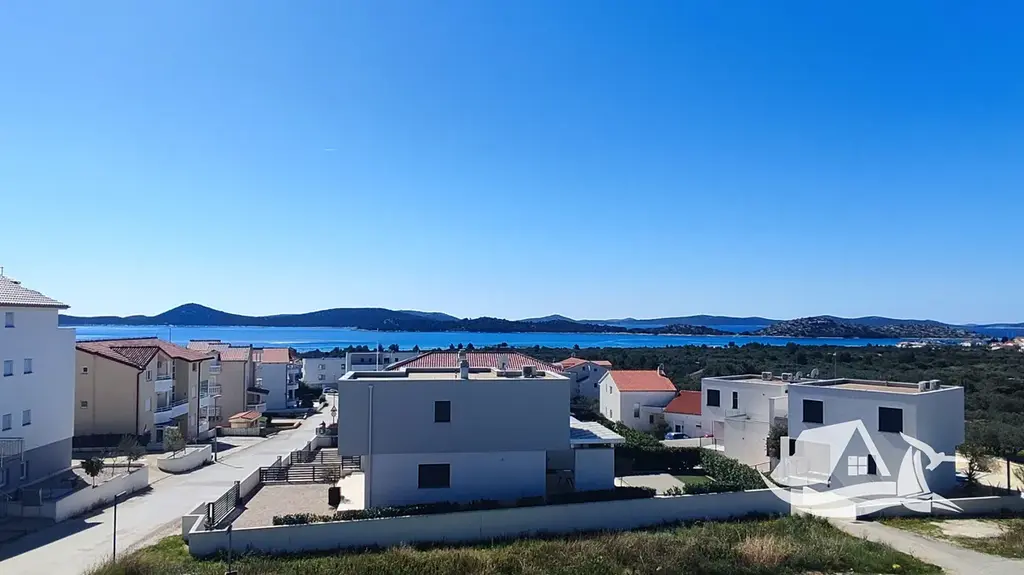 V klidné nové rezidenční části města Vodice se na mírném návrší nachází tento výjimečný moderní dvojdům, který zaujme promyšleným konceptem, nádhernými výhledy na moře a možností vícegeneračního či investičního využití. Nemovitost je vzdálena přibližně 700 metrů od pláže a pouze 900 metrů od centra města, takže nabízí soukromí a klid bez toho, aby vás odřízla od života, restaurací, obchodů a promenády.