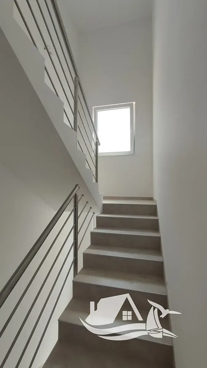 První patro nabízí tři ložnice a dvě koupelny, čímž vzniká komfortní noční zóna pro rodinu nebo hosty. Ve druhém patře se nachází další ložnice, koupelna, druhá kuchyně s jídelnou a obývací pokoj se vstupem na krytou terasu s panoramatickým výhledem na moře a město. Právě tato koncepce umožňuje využití domu jako dvou samostatných apartmánových celků.