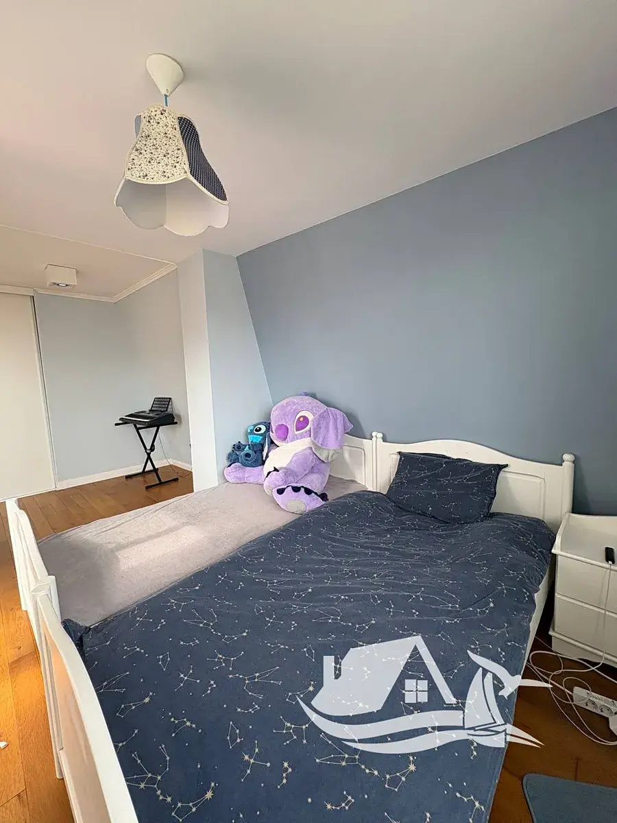 Mezonet o celkové ploše 138 m² se rozkládá v pátém a šestém podlaží a nabízí velkorysé řešení pro rodinu, hosty i delší pobyty. Dispozice je promyšlená tak, aby přirozeně oddělovala společenskou část od klidové.