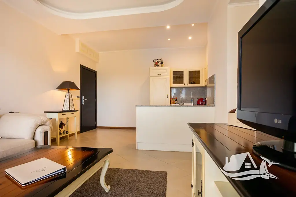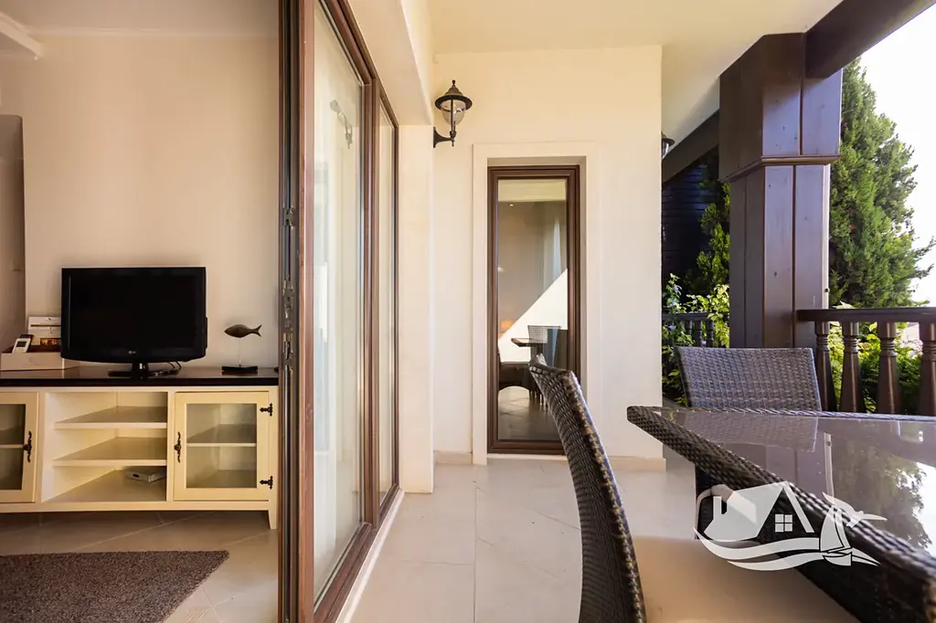Nabízený dvoupokojový apartmán se nachází v 1. patře budovy Marina Village, blok 1, v části resortu, která je dlouhodobě velmi žádaná pro krátkodobý i hotelový pronájem. Dispozice je praktická a osvědčená pro vlastní užívání i investici. Obývací pokoj je doplněn samostatnou toaletou pro hosty, ložnice má vlastní koupelnu s toaletou a z terasy se otevírá příjemný výhled do areálu resortu. Přímý výhled na moře není, což se pozitivně odráží v ceně, zároveň však apartmán nabízí klidnější polohu a snadnou dostupnost všech služeb.