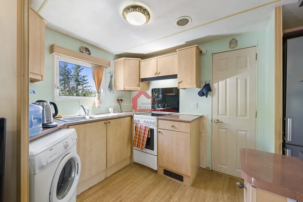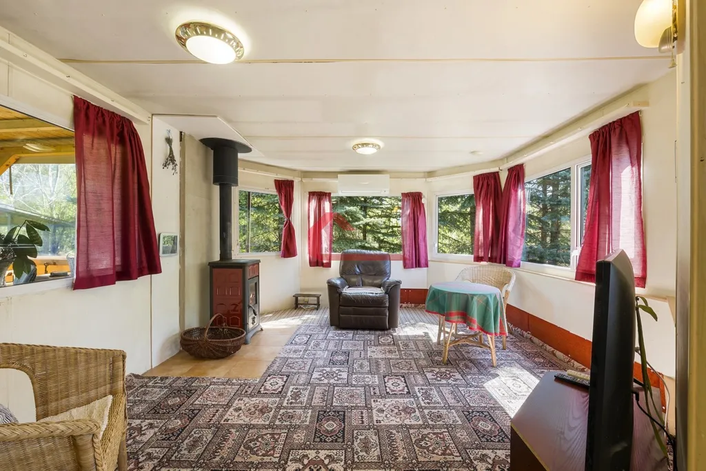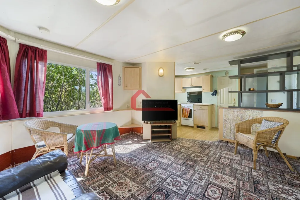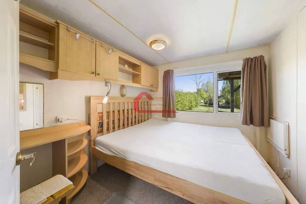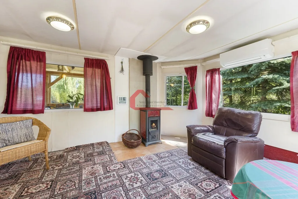 Mobilheim má obytnou plochu 53 m² a je doplněn o zastřešenou terasu o výměře 16 m². Dispozice 3+kk nabízí obývací část s kuchyní a dvě samostatné ložnice. Vytápění zajišťují krbová kamna, klimatizace s funkcí vytápění a přímotopy.