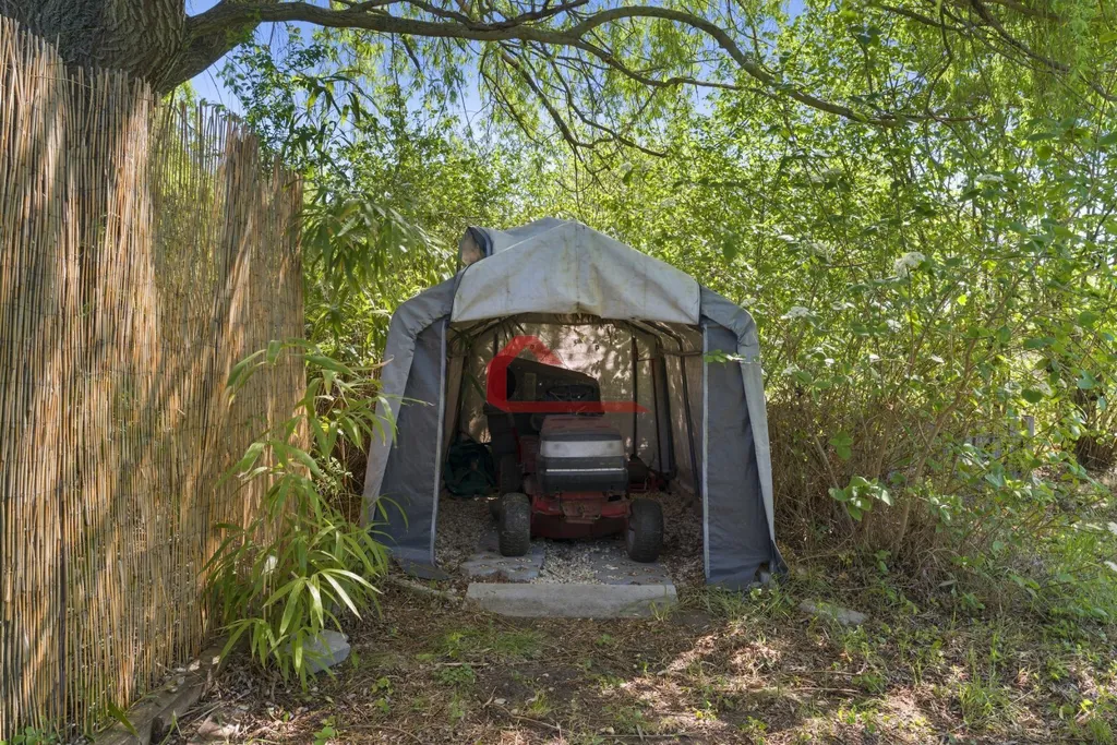Zahrada nabízí skleník, altán, ohniště, solární sprchu, dva přístřešky na dřevo a dostatek úložného prostoru. Dále je zde nízká dřevěná bouda na techniku - Darling a bojler. Součástí prodeje je také traktor na sekání trávy, viz. foto..