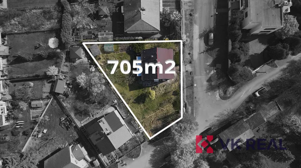 Pozemek o velikosti 705 m² nabízí dostatek prostoru i přirozené zeleně. Terén je mírně svažitý s potenciálem výhledů. Zahradu tvoří ovocné stromy, keře i zahradní domek a skleník.