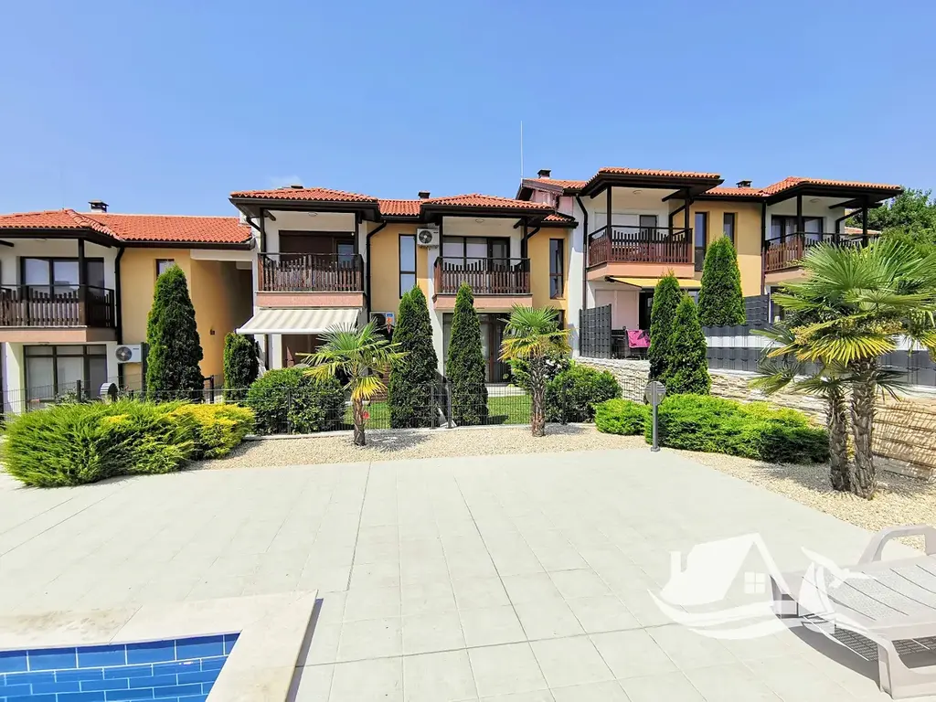 Představujeme Vám jedinečnou nabídku – dvoupodlažní městský dům typu townhouse v uzavřeném rezidenčním komplexu v klidném přímořském městečku Byala. Nemovitost spojuje komfort moderního bydlení s tradiční bulharskou architekturou – červené tašky na střeše, dřevěné balkony a prostorné panoramatické prosklení v obývacím pokoji. O útulnou atmosféru se stará i krb obložený přírodním kamenem.