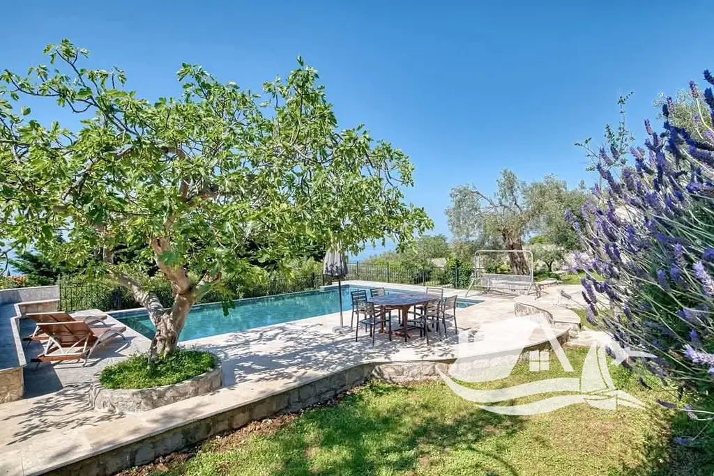 Exteriér je pečlivě upravený a osázený množstvím olivovníků a další středomořské zeleně, která vytváří pocit soukromého ráje. Součástí je krásný bazén s relaxační zónou pro posezení a odpočinek.