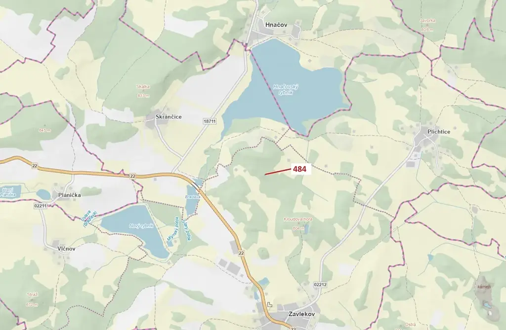 Lesní pozemek o výměře 90 m2, parcelní číslo 484, podíl 1/1, katastrální území Zavlekov, obec Zavlekov, obec s rozšířenou působností Klatovy, okres Klatovy, Plzeňský kraj. Po těžbě.