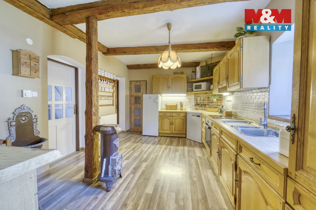 Nabízíme k prodeji rodinný dům o dispozici 6+kk v obci Hodousice nedaleko Nýrska, který je ideální pro milovníky koní a života v přírodě. Dům s užitnou plochou 189 m² se nachází na pozemku o velikosti 2 378 m² a prošel kompletní rekonstrukcí v roce 2019. Nemovitost nabízí spojení bydlení a zázemí pro chov koní – jedna část budovy slouží jako rodinný dům a druhá navazující část je využívána jako stáj pro tři koně. Dům se prodává kompletně zařízený. V přízemí domu se nachází obývací pokoj propojený s jídelnou, kuchyň a koupelna s toaletou. V patře jsou tři ložnice a pracovna, přičemž jeden z pokojů má vlastní koupelnu s toaletou. Vytápění zajišťuje elektrokotel, kotel na tuhá paliva a krb v obývacím pokoji. Na pozemku se nachází altán s krbem, vířivka, vlastní studna a pozemkem protéká potůček. Součástí areálu je také jízdárna. Na pozemek přímo navazuje louka o výměře 8 843 m² s přístřeškem pro koně, kterou je možné pronajmout a využívat jako pastvinu.