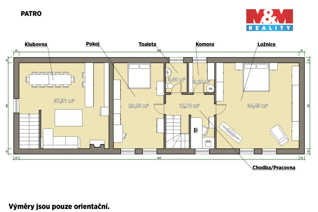 Dům o užitné ploše 225 m² je rozdělen do dvou nadzemních a jednoho podzemního podlaží. Dispozice nabízí celkem tři ložnice, prostornou kuchyň s obývákem, dvě koupelny, technickou místnost a další prostory využitelné například na uskladnění věcí.